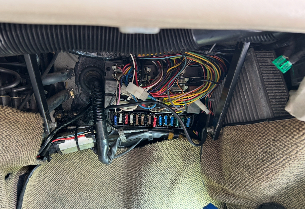 Les fusibles sont déjà plus modernes qu’à l’origine. Fred m’avait installé des fusibles modernes entre les barrettes originelles ce qui avait amélioré les choses. Avant, je mettais le contact et je me courbais pour appuyer sur la barrette et il fallait dans cette position tête en bas attendre 2 minutes qu’elle chauffe un peu (la tablette, pas la tête) sans quoi, je ne démarrais pas !