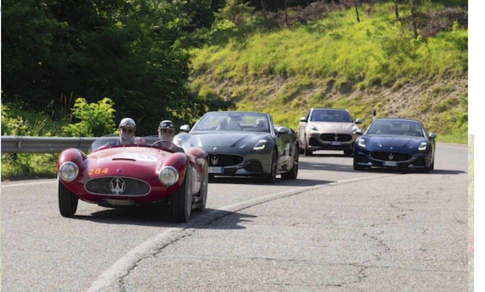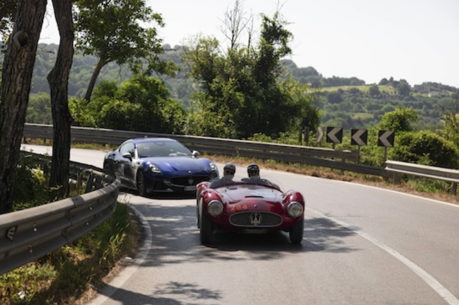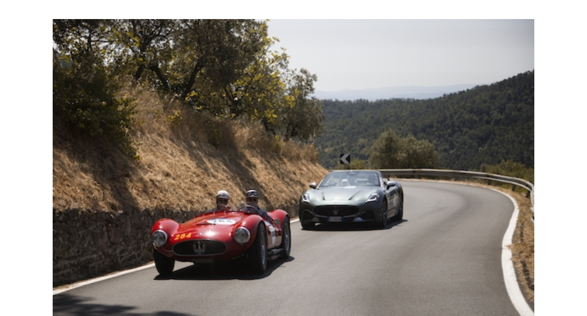 Et les Maserati neuves du Grand Tour suivent en Toscane les Mille Miglia historiques :