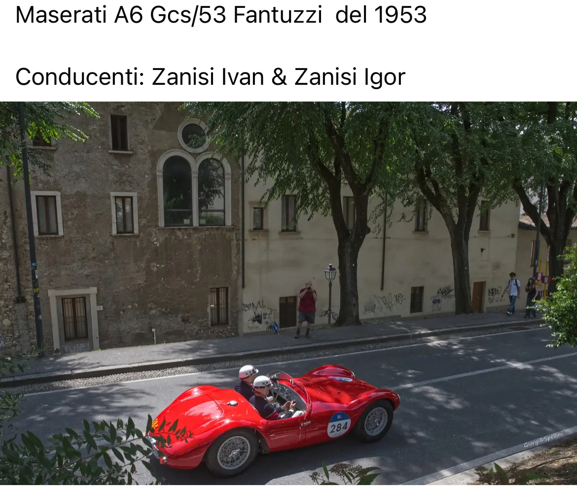 je vous propose de suivre ici les Mille Miglia historiques 2025 (et le "Grand Tour" des Maserati neuves en marge des Mille Miglia historiques) avec l’A6GCS53 #2043 qui a participé à 5 éditions des Mille Miglia de 1953 à 1957 :
