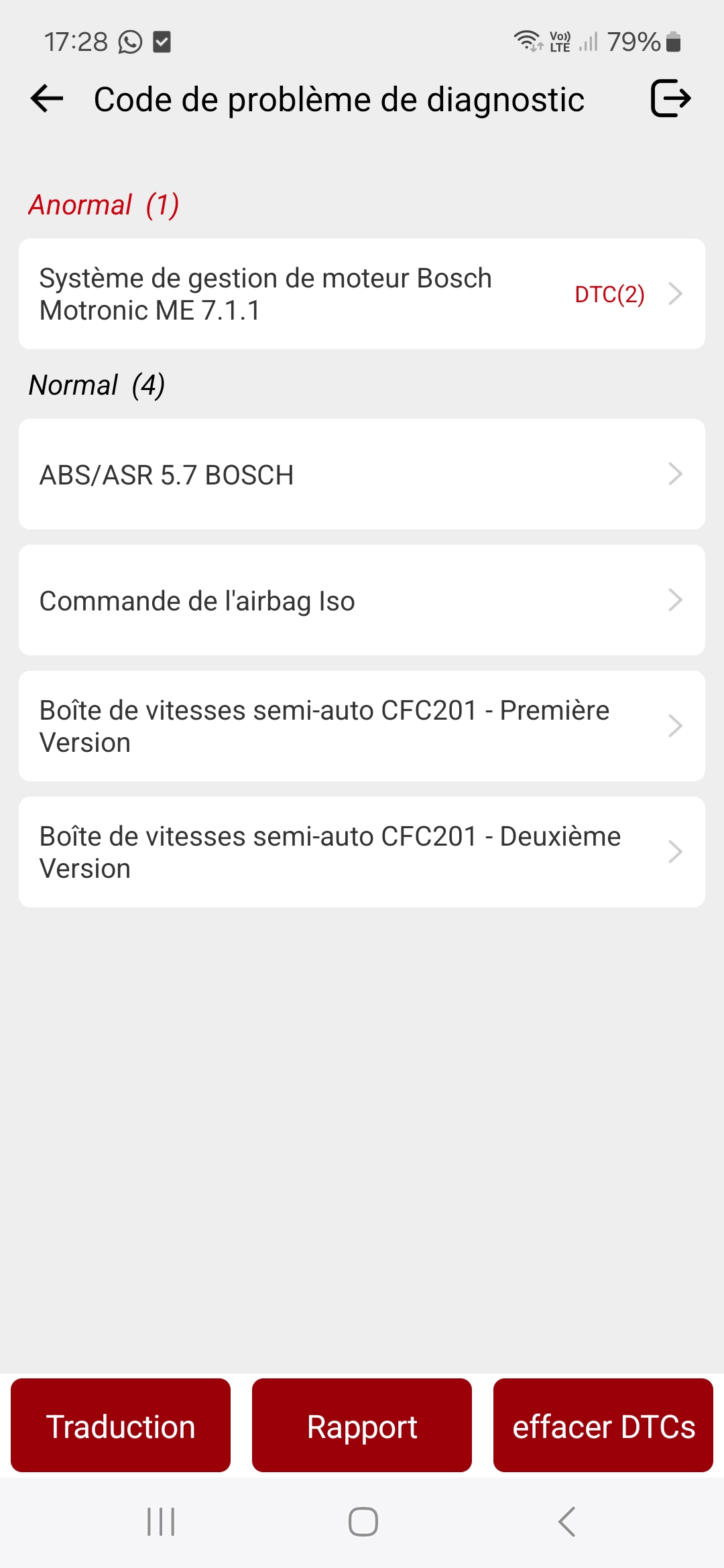 J’ai lancé des Quick test à l’arrêt et en roulant et j’ai trouvé toujours ces deux codes erreur.