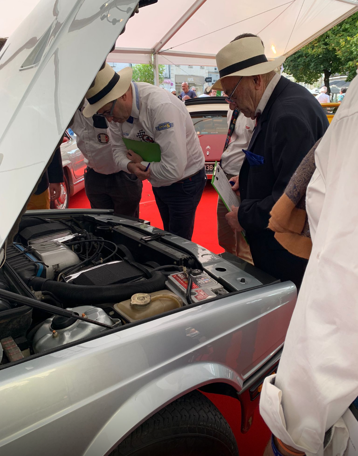 Olivier leur distillait les informations sur son bijou : Le deux litres Biturbo, avec ses échangeurs alimentés en air frais par les superbes prises Naca sur le capot, délivre 205 cv. Le compartiment moteur est immaculé et comme neuf ! À chaque fois, des points sont attribués et Oliviers et son fils voyaient les croix se dessiner dans toutes les cases possibles (peinture, moquette, ciel de toit, compartiment moteur, démarrage du moteur…).