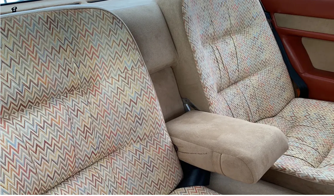 Vous ne verrez pas cette image très souvent, les amis. D'après le grand collectionneur modenais Stefano Dalai, il ne reste quasiment plus d'autres Biturbo S initiales à tissu Missoni très fragile. La sienne a d'ailleurs reçu secondairement l'ensemble cuir orangé - alcantara. Il faut dire que la Biturbo S de Stefano était son daily, alors que celle d'Olivier n'a que 10 000 km d'origine et a été très précautionneusement conservée par son premier propriétaire italien puis par Olivier depuis 2012.