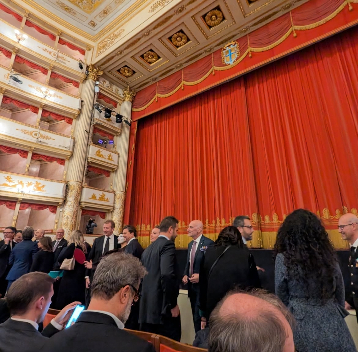 Discours de Santo Ficili devant cette belle Rosso Velluto sur la scène du théâtre :