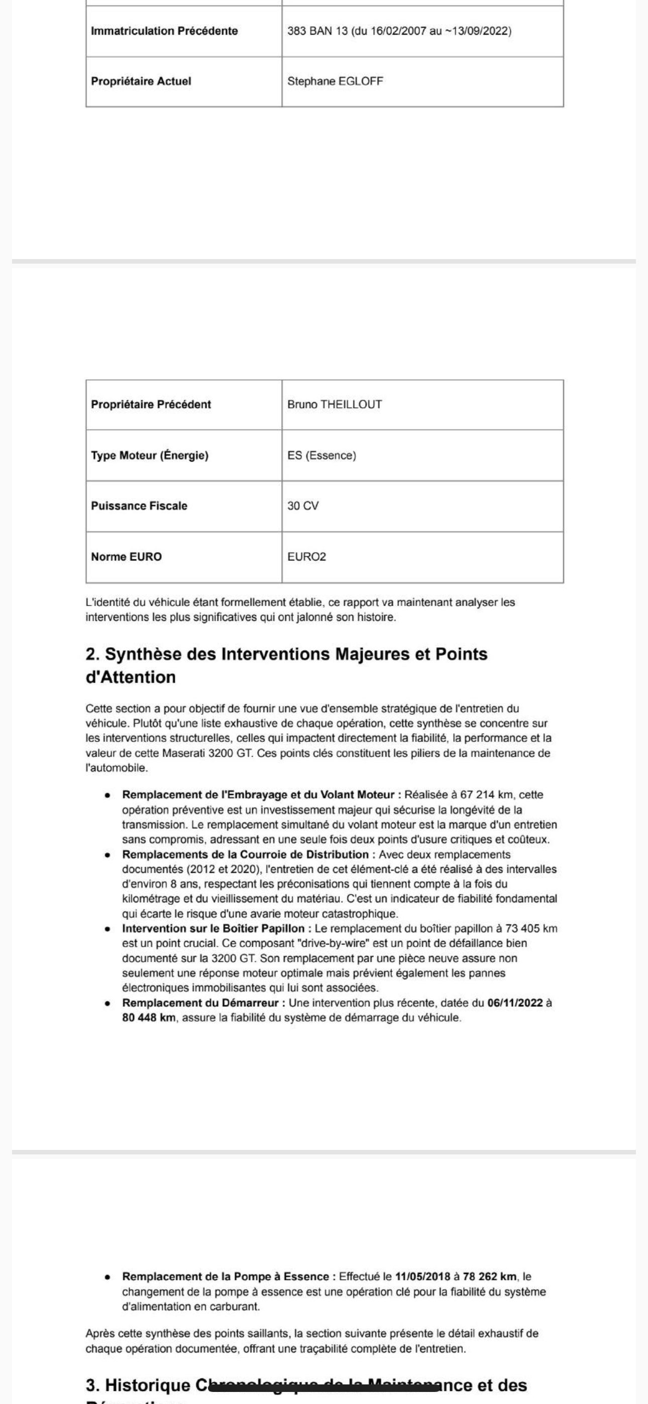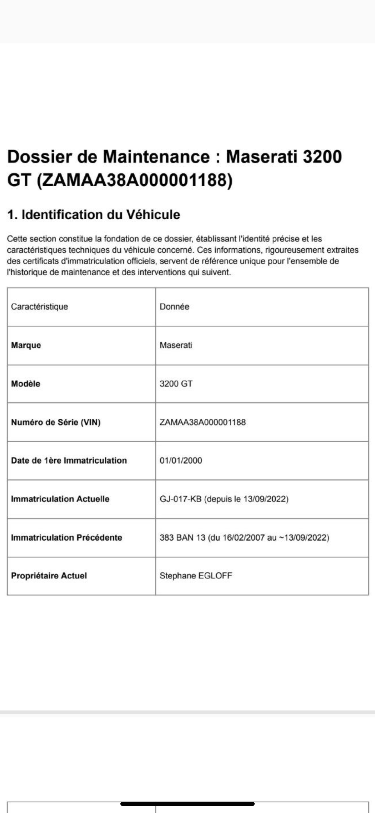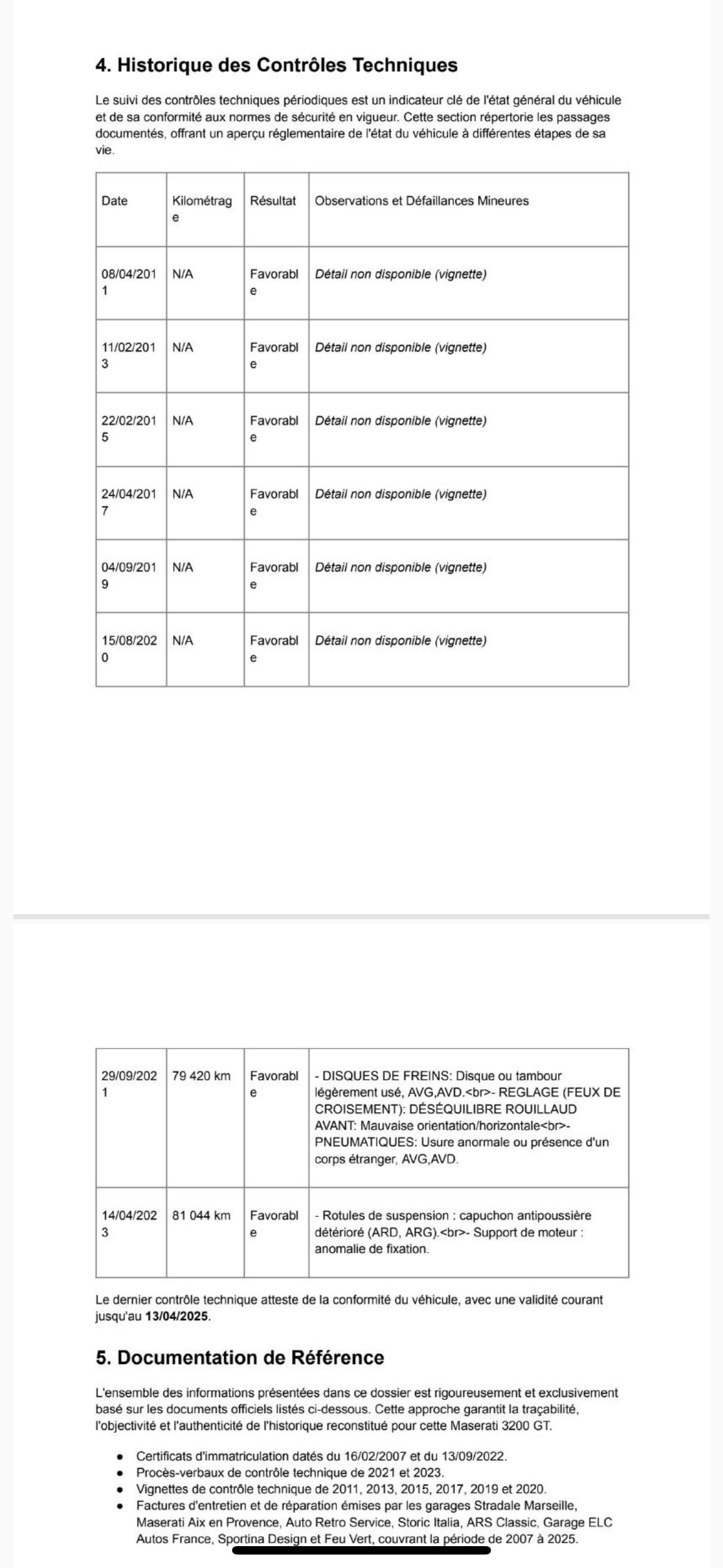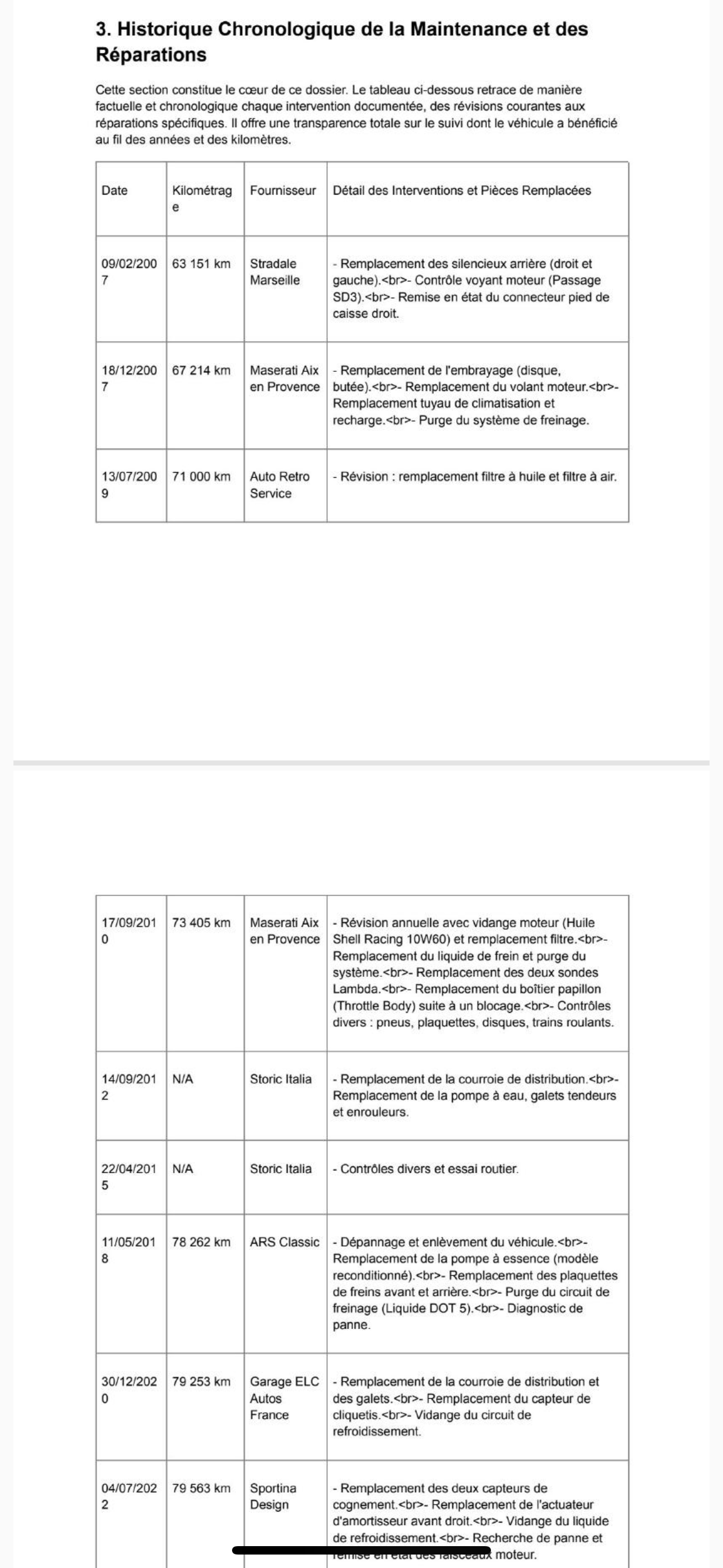 Le propriétaire m’a passé l’historique d’entretiens qui a quelques trous il me semble.