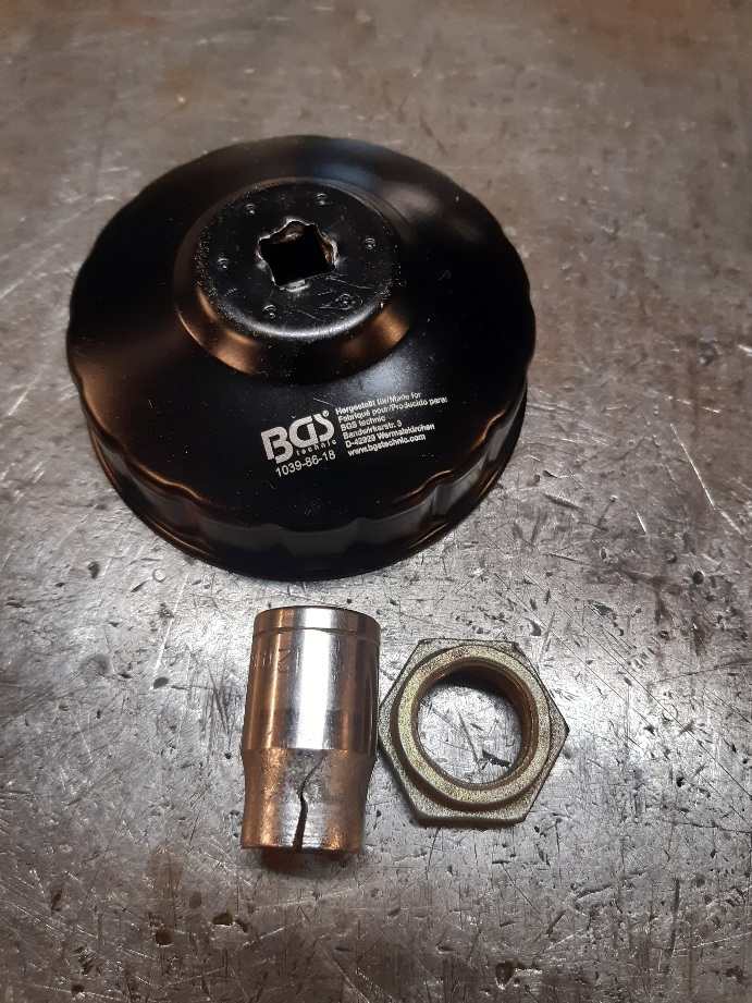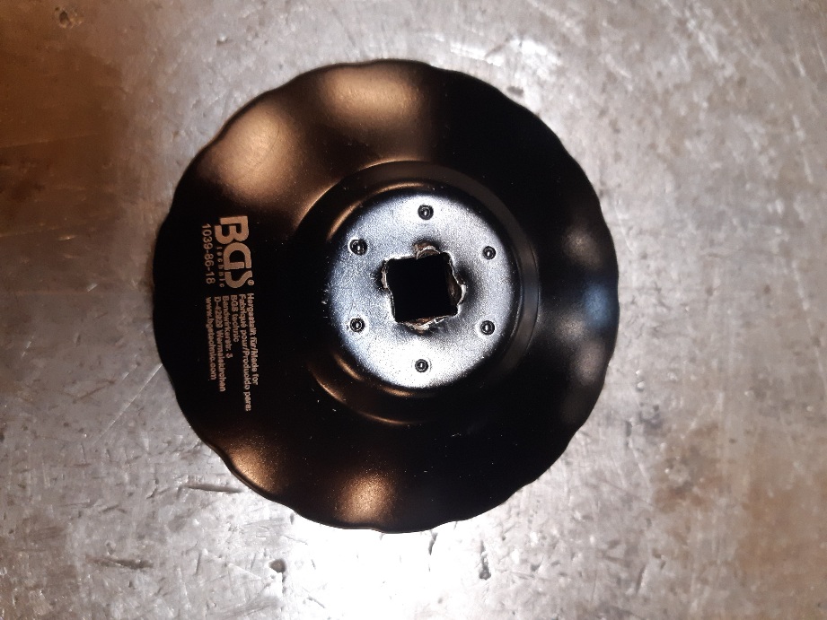 Ça c'est question de ne pas avoir de l'huile de partout, c'est un jeu d'enfant avec ma nouvelle clé à filtres (c'est un diamètre 86mm avec 18 cannelures qu'il faut), mais honnêtement ces clés ne sont vraiment pas de très bonne qualité, je reviens tout à l'heure là dessus.