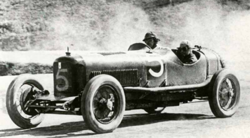 Et voila le patron de Maserati et son mécanicien (qui essaye de se tasser le plus possible au fond du siège) en pleine action il y a pile 100 ans, le 25 avril 1926, sur les routes de Sicile où se courrait la Targa Florio :