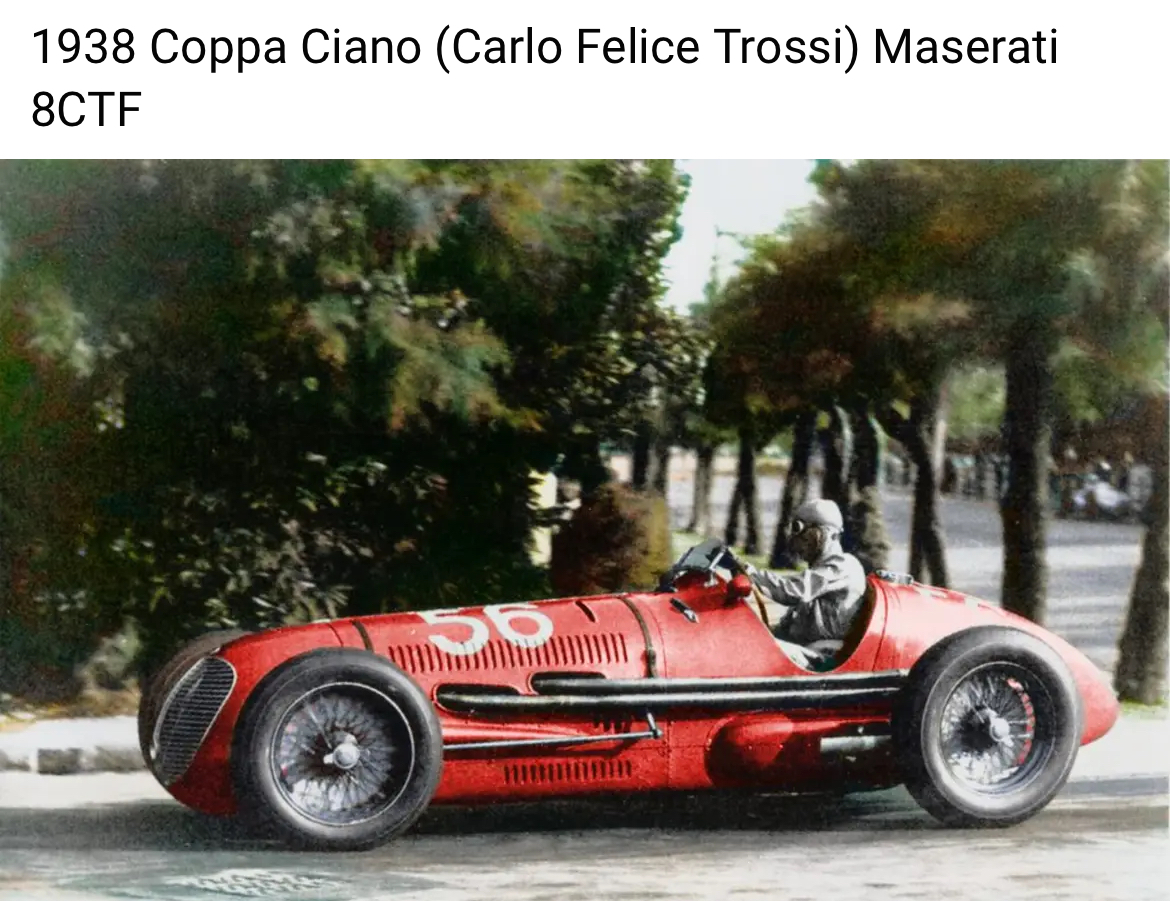 La 8CTF de 1938 (Testa Fissa, culasse coulée en une seule pièce avec le bloc) avait deux soupapes par cylindres et une course longue (69 x 100). 365 cv pour 780 kg, 290 km/h. C'est elle qui remporta Indianapolis 2 fois en 1939 et 1940.