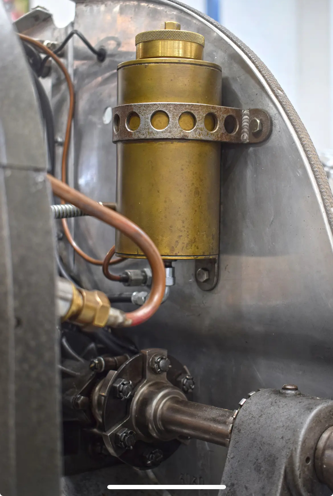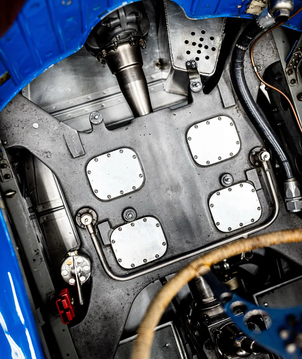 Très belle 8CTF avec détails dont la commande de direction et le réservoir d’huile en magnésium sous le siège :