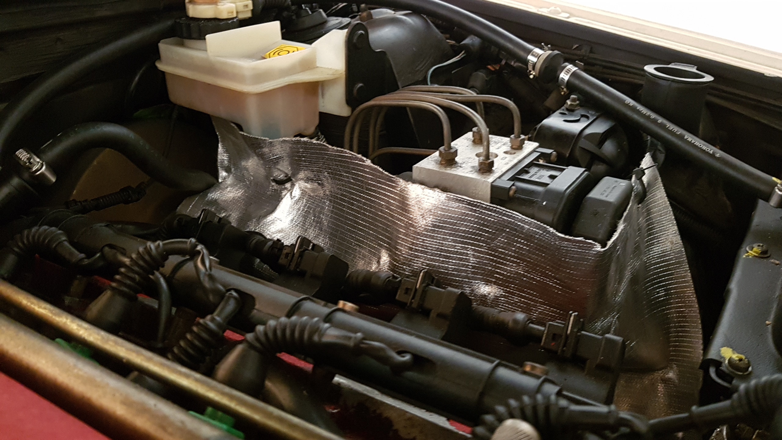 c'est une habitude que j'ai depuis longtemps (isolation thermique) je l'ai fait sur l'Alfa SZ pour la bobine qui chauffait prés des tubulures de gauche, pannes d'allumage à cause de çà. Depuis qu'elle est isolée en feuille d'alu : tout ok!.