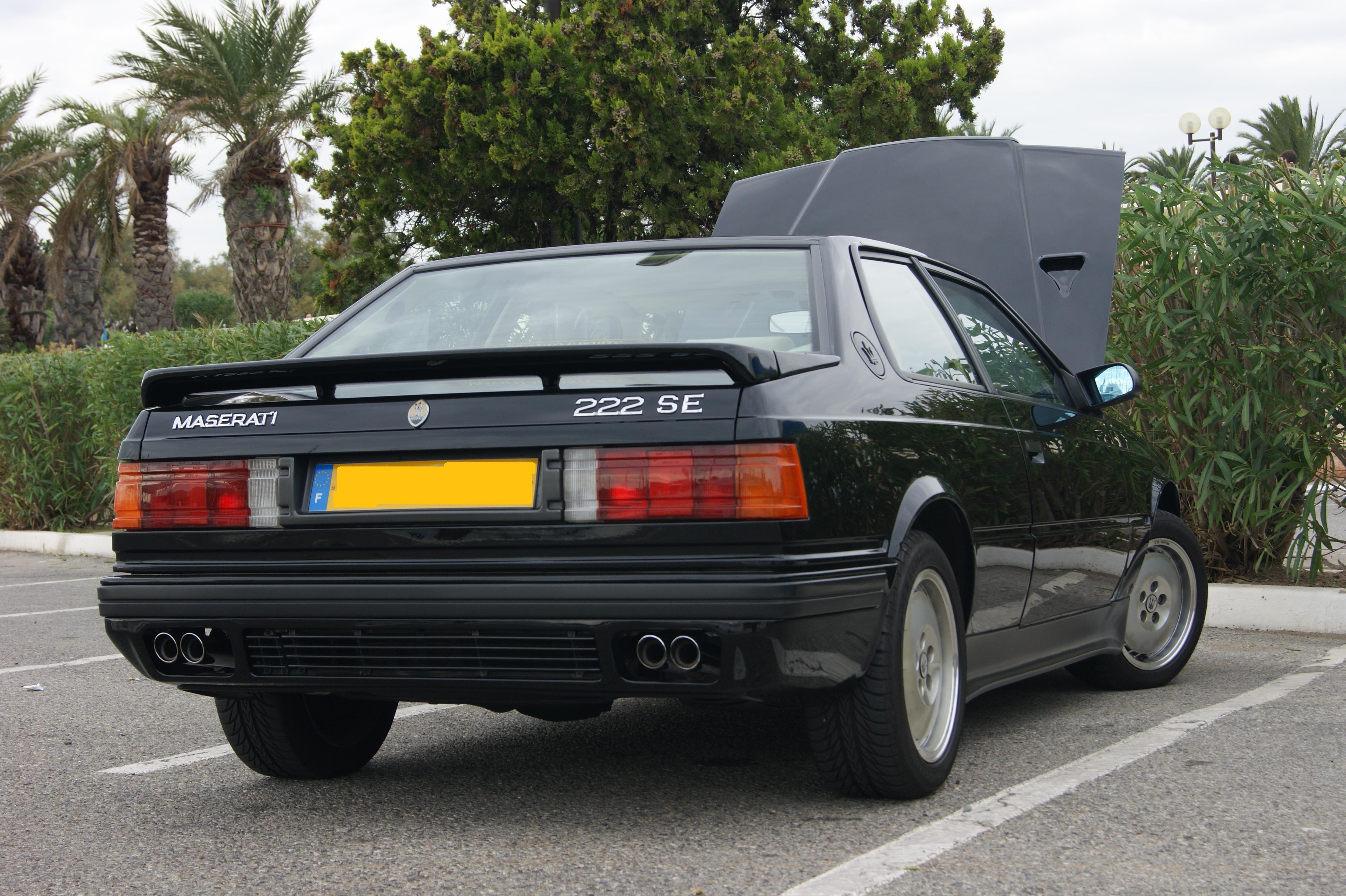 Restyling de la Biturbo, la 222 première du nom fut présentée en 1988 au salon de Turin en remplacement de la Biturbo Si dont elle reprenait exactement la mécanique V6 Biturbo 2 litres 220 cv. La 222 s'inscrivait dans la lignée des appelations numériques après la 425, la 228 et la 430. Elle aurait logiquement dû s'appeler 220 pour 2 portes, 2 litres. Le dernier 2 est mystérieux : 2ième série, 2 arbres à cames en tête, 222 km/heure (la vitesse de la 2 litres) ?
