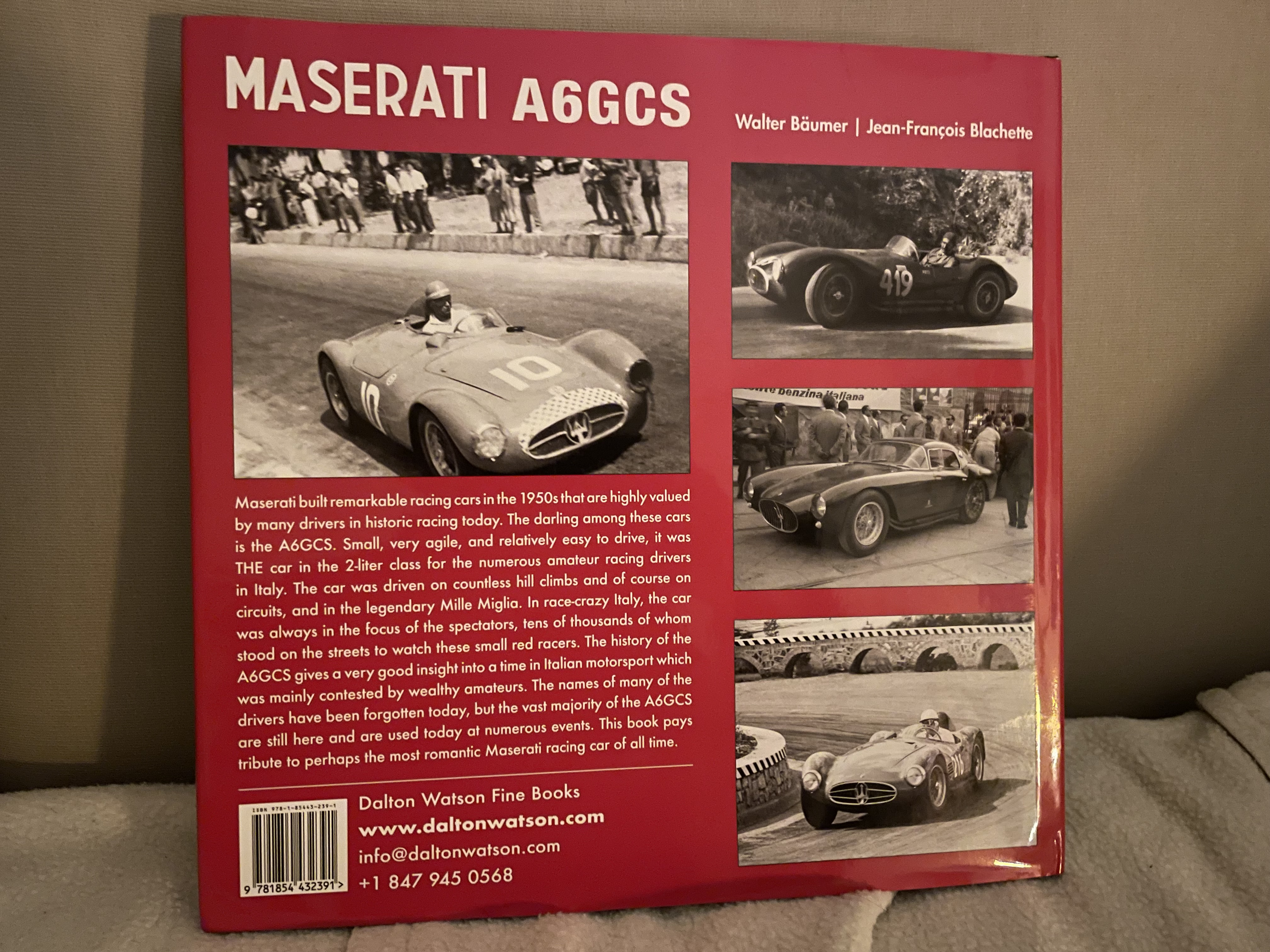 Belle collaboration Maserati Club- Maseratitude comme on peut le voir sur cette photo où nous avons échangé nos livres : Jean-François Blachette et Walter Bäumer ont écrit un monument, l'histoire des 52 exemplaires d'A6GCS/53 châssis par châssis. C'est énorme : 2 ans de travail chacun à temps plein ! Des centaines de photos inédites qu'ils ont du acheter, tous leurs droits d'auteurs y sont passés. Financièrement, ce n'est pas une opération blanche mais déficitaire largement car ils ont sillonné l'Europe à la recherche des voitures qu'ils sont allés voir et des photos qu'ils ont négociées. Sans parler d'un intense épluchage d'archives disséminées. Un travail de titan, pour chaque voiture, les courses auxquelles elle a participé, les différents pilotes successifs et les résultats. Indispensable pour tout amoureux des Maserati historiques. En Anglais. 400 pages.