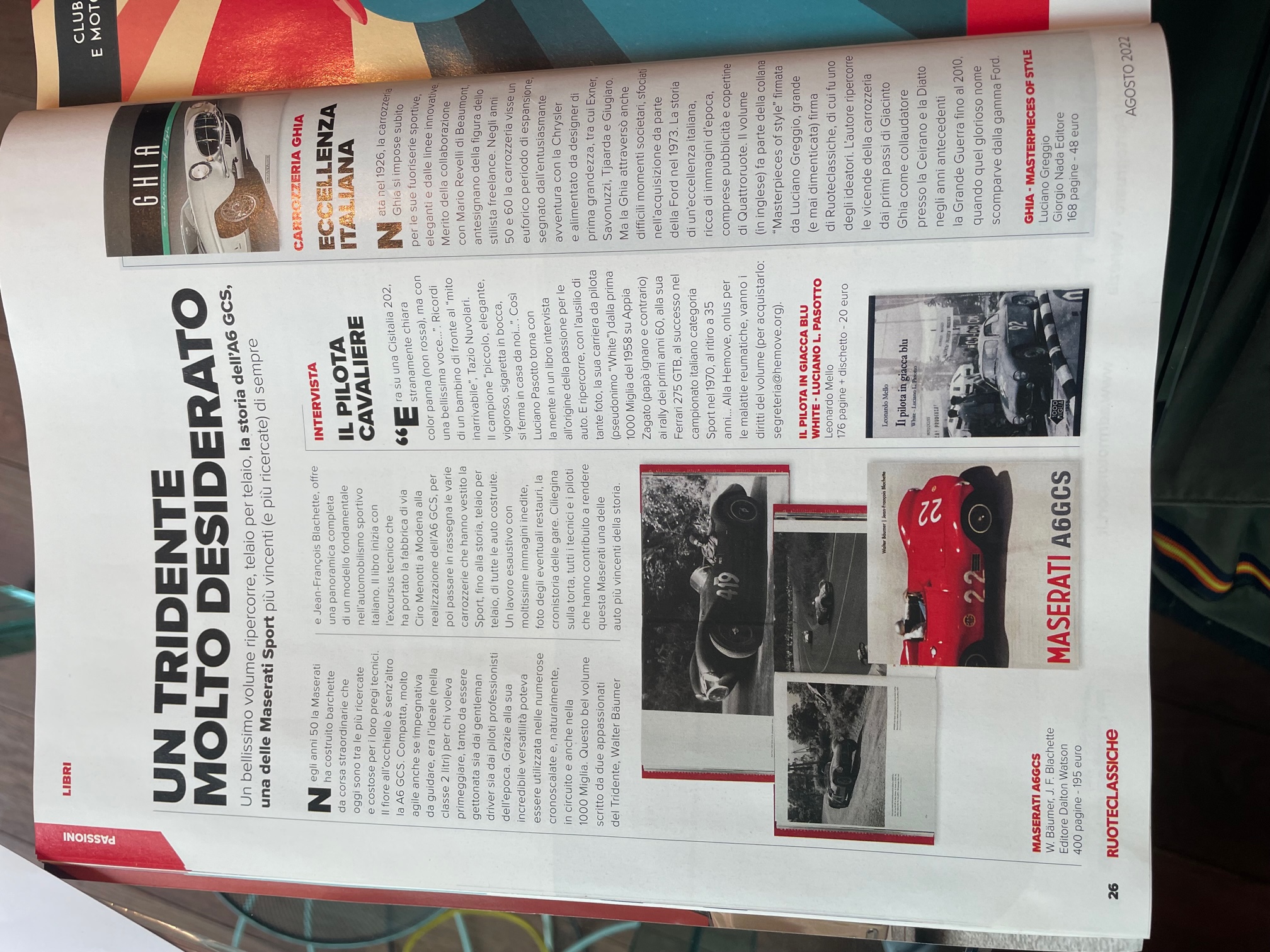 Article dans le journal Ruotte Classiche d'aout 2022 encensant ce livre exceptionnel :