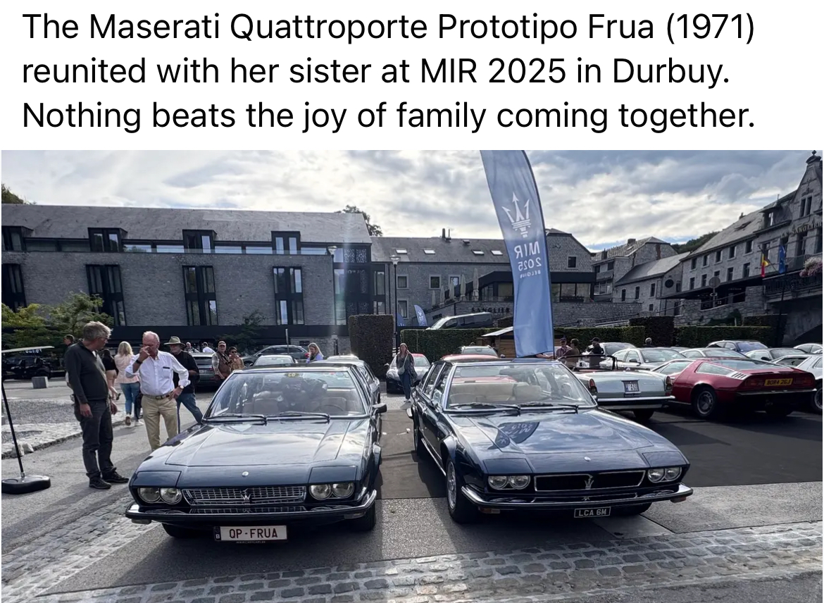 4000 € c'est le budget fixé par Maserati S.P.A. pour les Rallyes internationaux. Ca se déroule sur 5 jours (donc 4 nuits) et , en effet, c'est plutôt bien placé compte tenu du contenu, souvent exclusif des MIR, en regard d'autres Rallyes de prestige multi marques. Par expérience on en a pour son argent ! De surcroit, les clubs qui sont des associations ne font aucun bénéfice de toute façons, contrairement aux organisations privées (à but lucratif)gemini a écrit : ↑mar. 29 juil. 2025 15:46 Complet depuis très longtemps.![]()