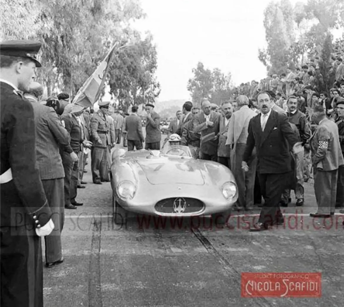Luigi Musso à la Targa FLORIO 1954 où il finit 11ième ce qui est excellent car il s’était arrêté pour secourir une femme pilote accidentée :