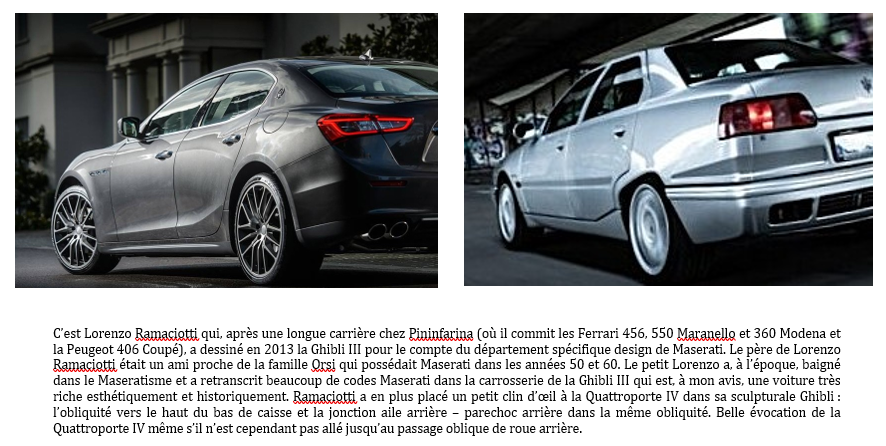 Celle qui descend de la Quattroporte IV, c'est la Ghibli III, plus compacte et en moteur Biturbo ! :)