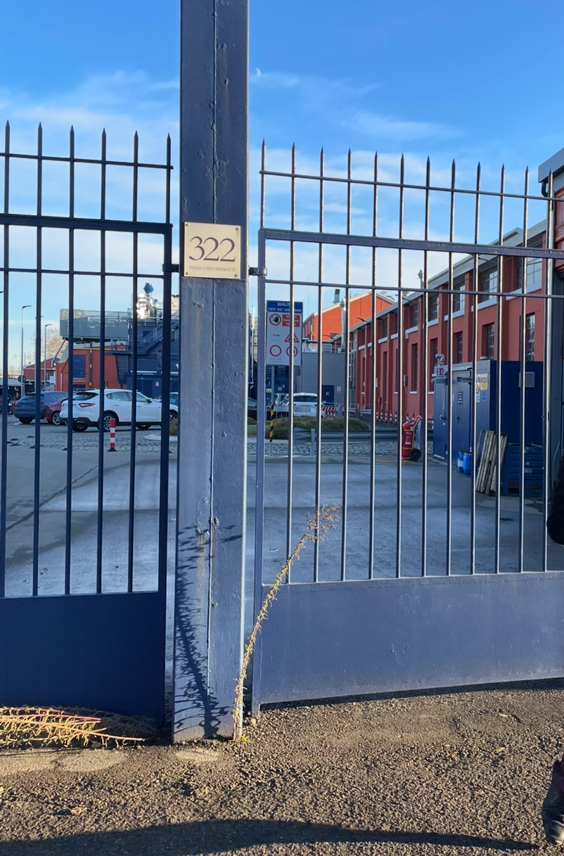 C’est le portail avec la vieille et mythique adresse :322 via le Ciro Menotti, sous la pente du pont enjambant la voie ferrée.