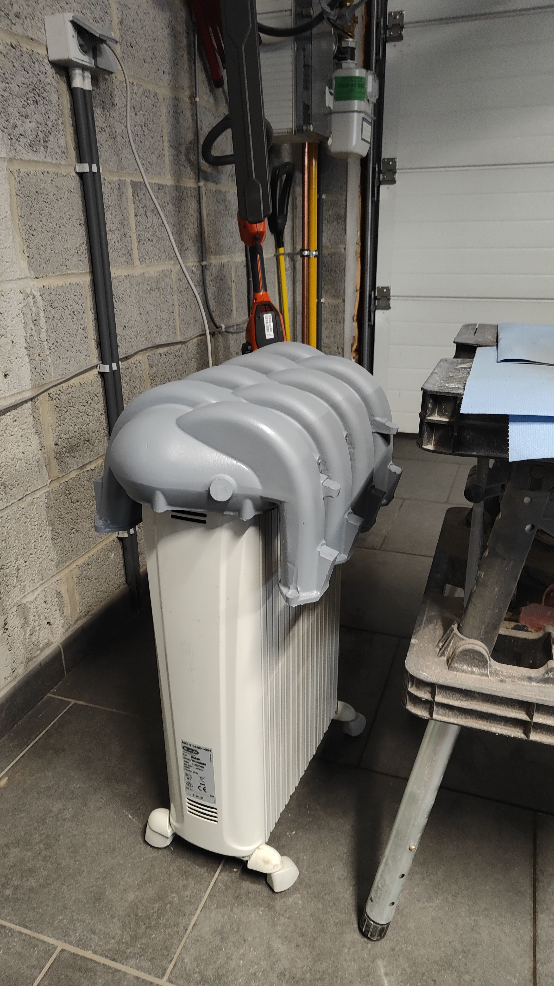 J'en ai aussi profité pour sabler la pièce inférieure. Il faisait noir et les filles dormaient, donc, faire tourner le compresseur était plutôt une mauvaise idée. J'attends les bombes de peinture. J'ai opter pour du noir car le doré est introuvable à un tarif décent.