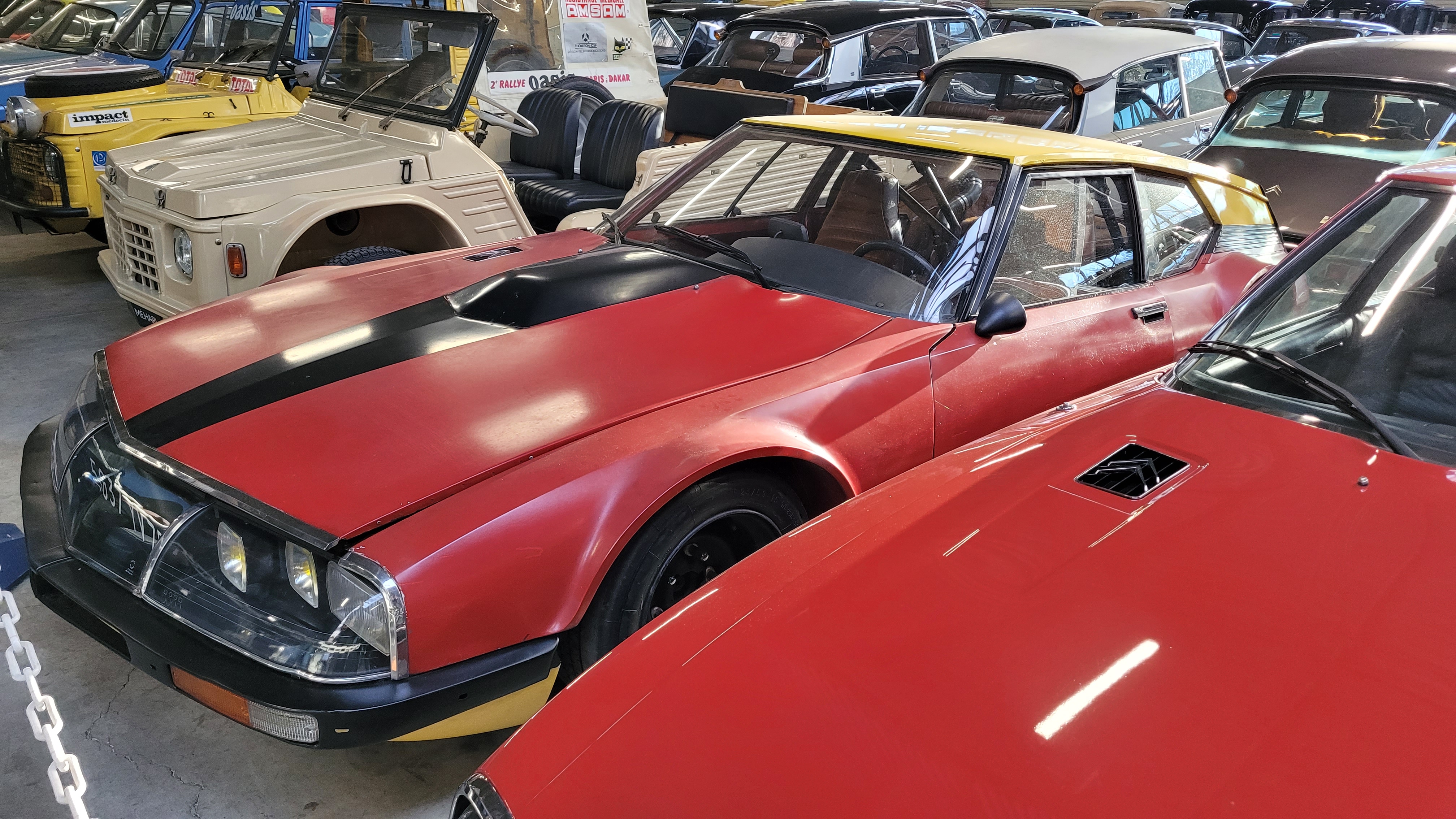 Mais voila, dix ans plus tard cette Sm est réapparue à la lumière blanche avec un toit rouge (aubergine ?) roulante (évidemment sans jantes résine, ailes US & bimbeloteries) dans une casse (à Epinay/Seine de mémoire) et y est restée aussi environ dix ans avant d'être finalement cédée à l'état d'épave (rongée par les fuites du toit entres autres).