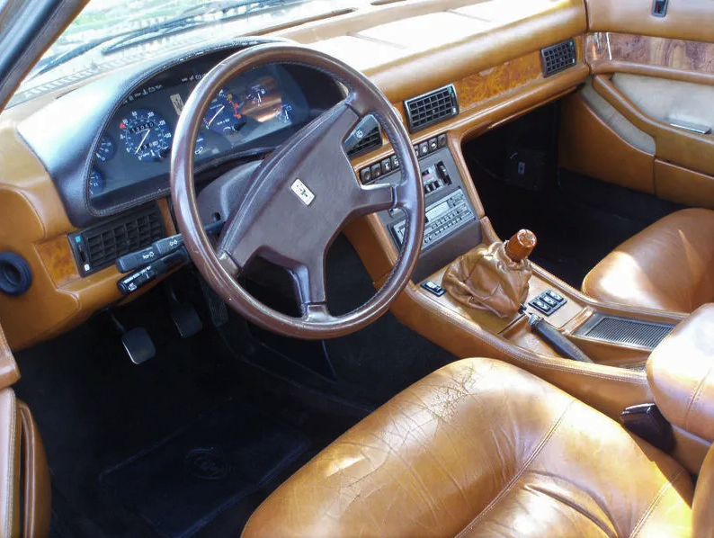 Dans l’épopée Biturbo, la 425 a ainsi inauguré pas mal de choses : les 4 portes bien-sûr mais aussi l’appellation numérique (425), le tableau de bord arrondi, la montre Lassale, l’inscription Maserati sur le (vrai) bois de la planche de bord et de nouvelles poignées de portières :