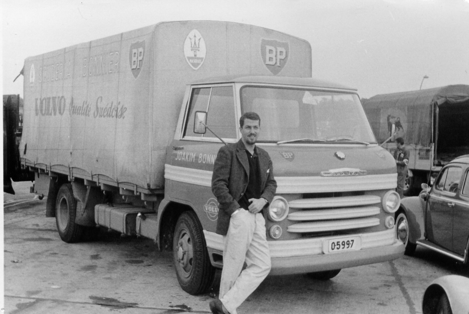 On arrive à l'époque moderne = 1960, écurie Jo Bonnier avec un camion Volvo