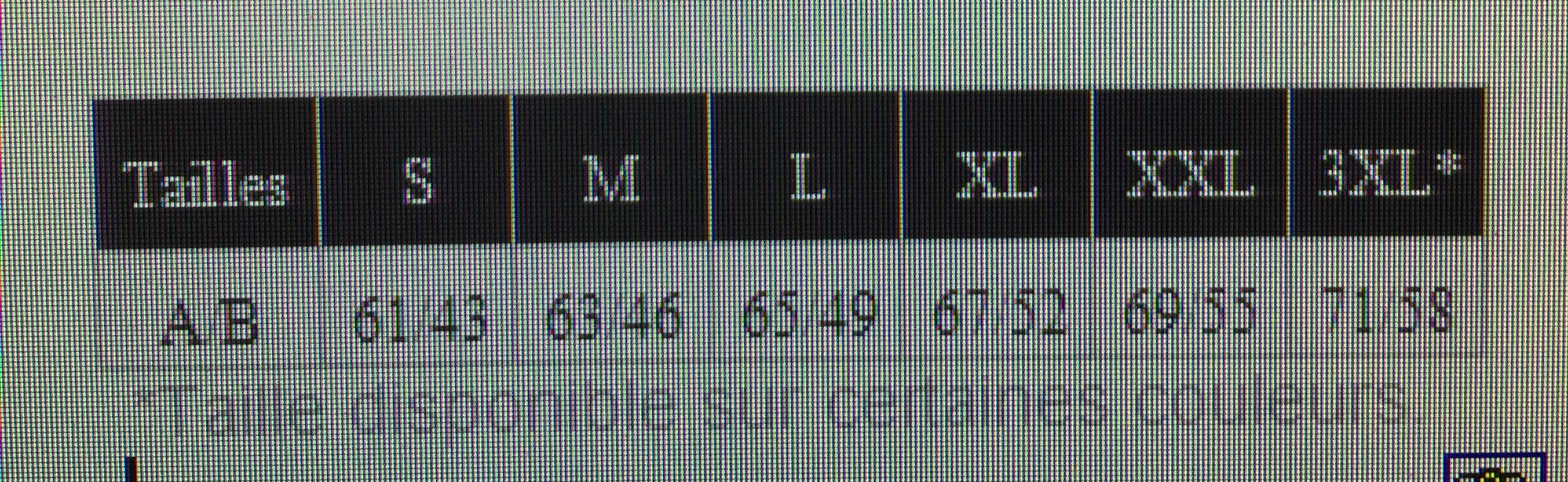 J'ai ajouté en tête de poste le tableau de correspondance dimensions / taille