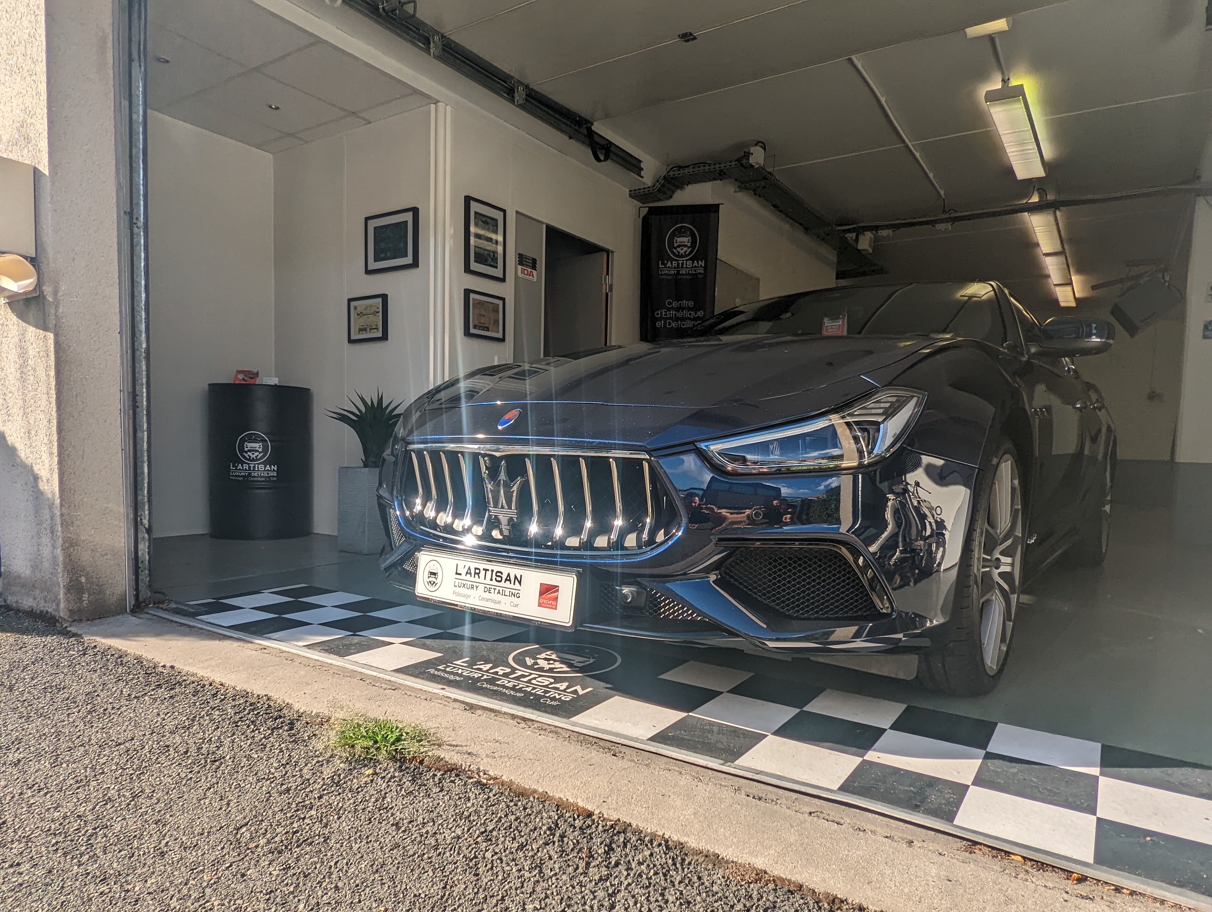 Projet Ghibli - Lavage intensif, décontamination carrosserie, polissage complet, retouché peinture, pose de traitement céramique Gtechniq Crystal Serum Ultra + EXO V4, traitement jantes + surface vitrée + partie plastiques extérieur, nettoyage et protection de l’habitacle.