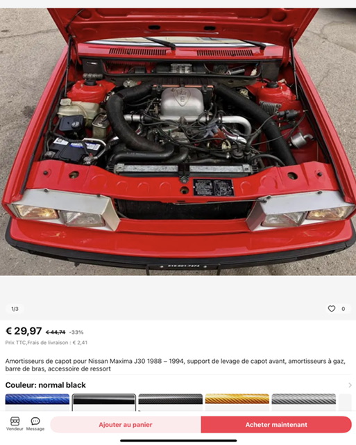 Alors, pour une raison que voila, c’est une raison, j ai cherché des vérins de capot. Bon il y a ceux qu a indiqués Gemini dans son fil Shamal je crois.