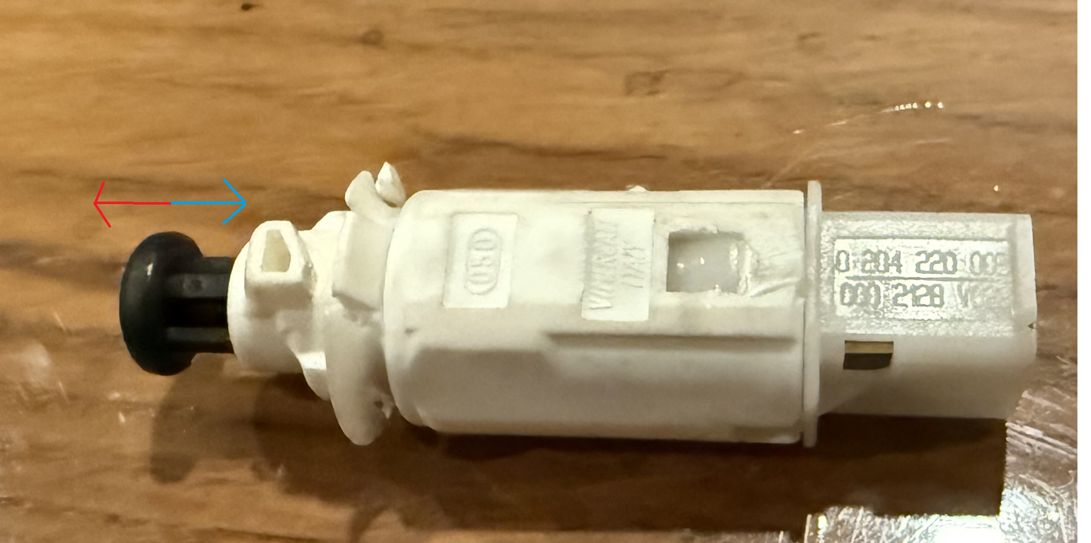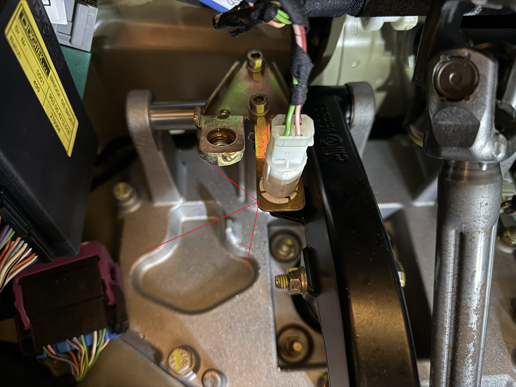On accède au contacteur que voici sur le haut de la pédale de freins: