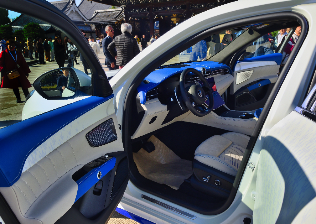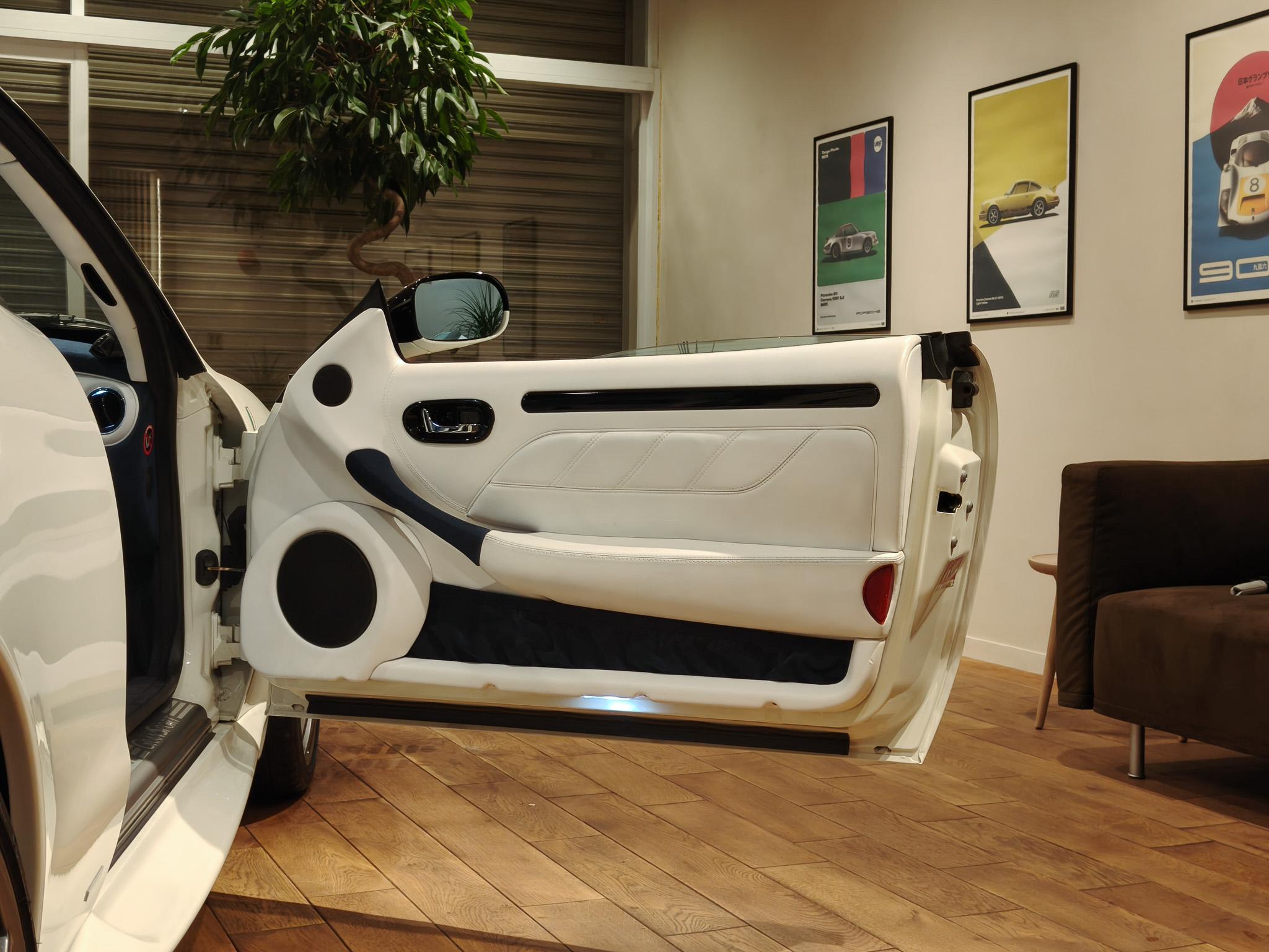 Intérieur cuir blanc / alcantara bleu foncé / Moquette et ciel de toit bleu nuit