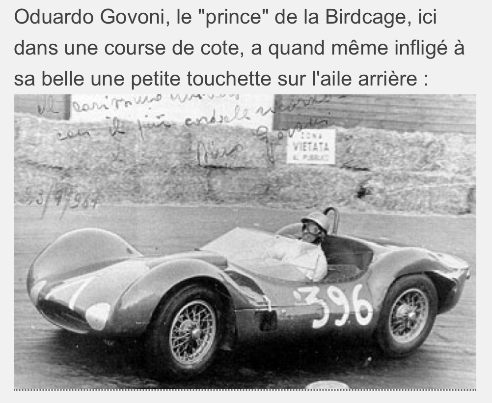 Mais le nom d’Odoardo Govini reste dans l’esprit de tous les amateurs de sport automobile absolument associé à la Birdcage qui lui offrit ses plus beaux succès !