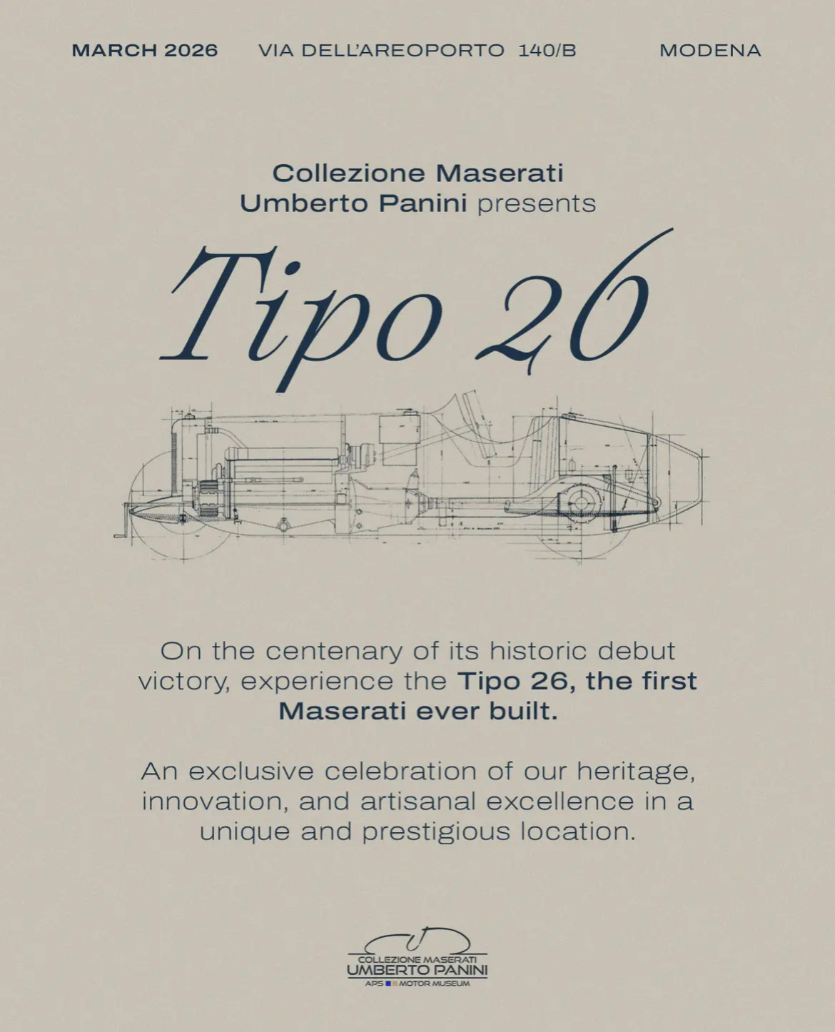 Pour l’occasion, le nouveau musée Panini présentera du 6 mars 2026 au 3 juin 2026 une rarissime Tipo 26, la troisième construite :