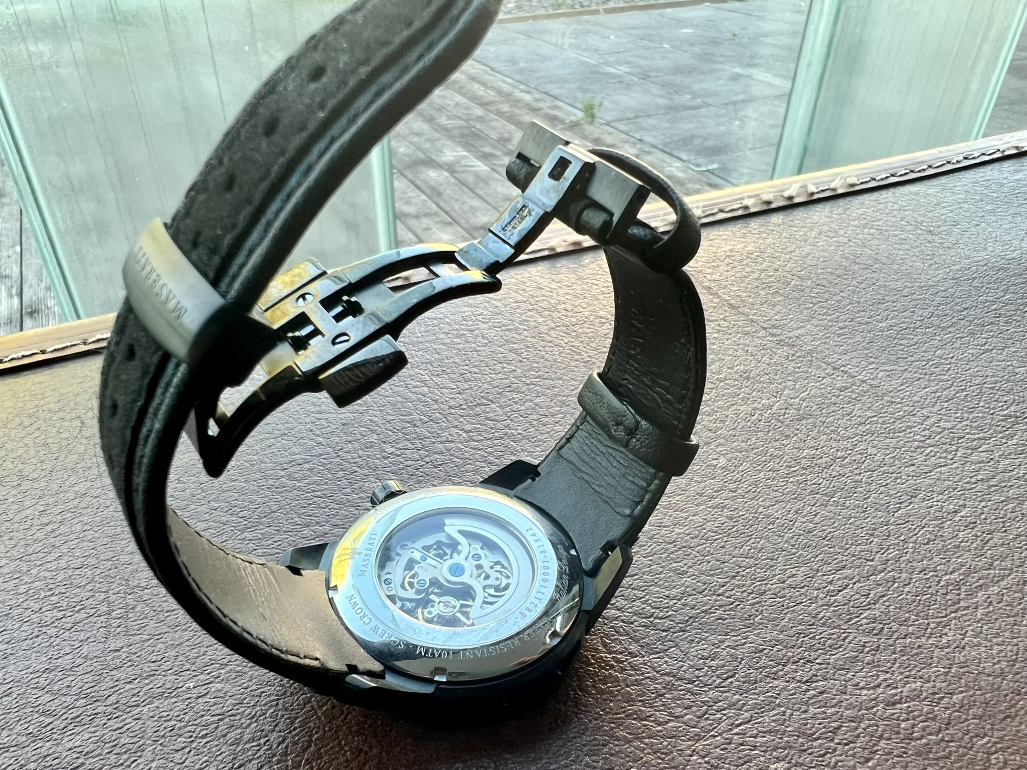 Petit ajout à la collection : une automatique simple, avec quelques détails sympas, le bracelet par exemple ou bien les 3 ouïes Maserati sur le côté du boitier. Très bel exemplaire. J'adore.