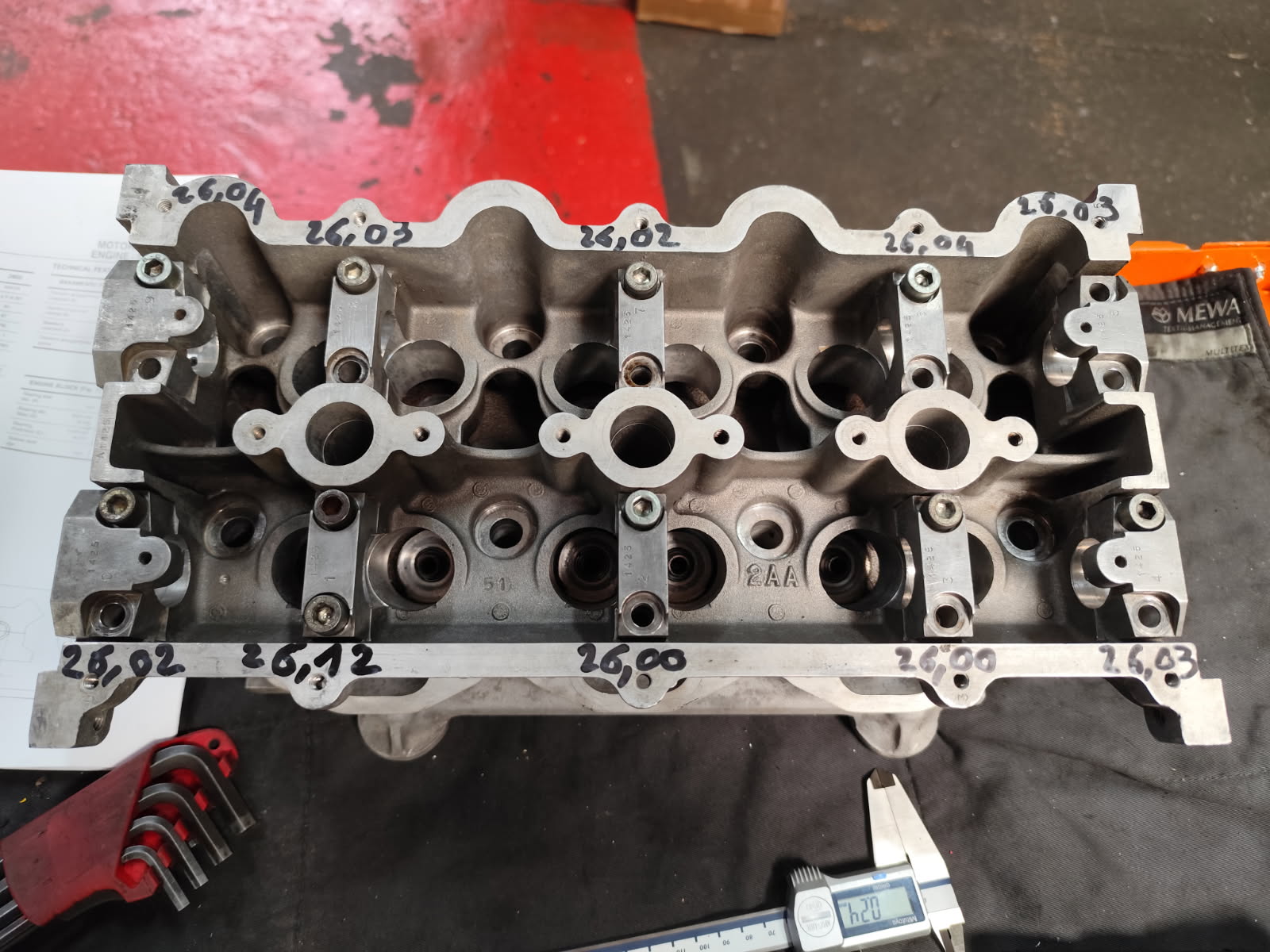 Maserati préconise de 4 à 8 centièmes, globalement on est dans les clous. La culasse est donc bonne pour remontage.