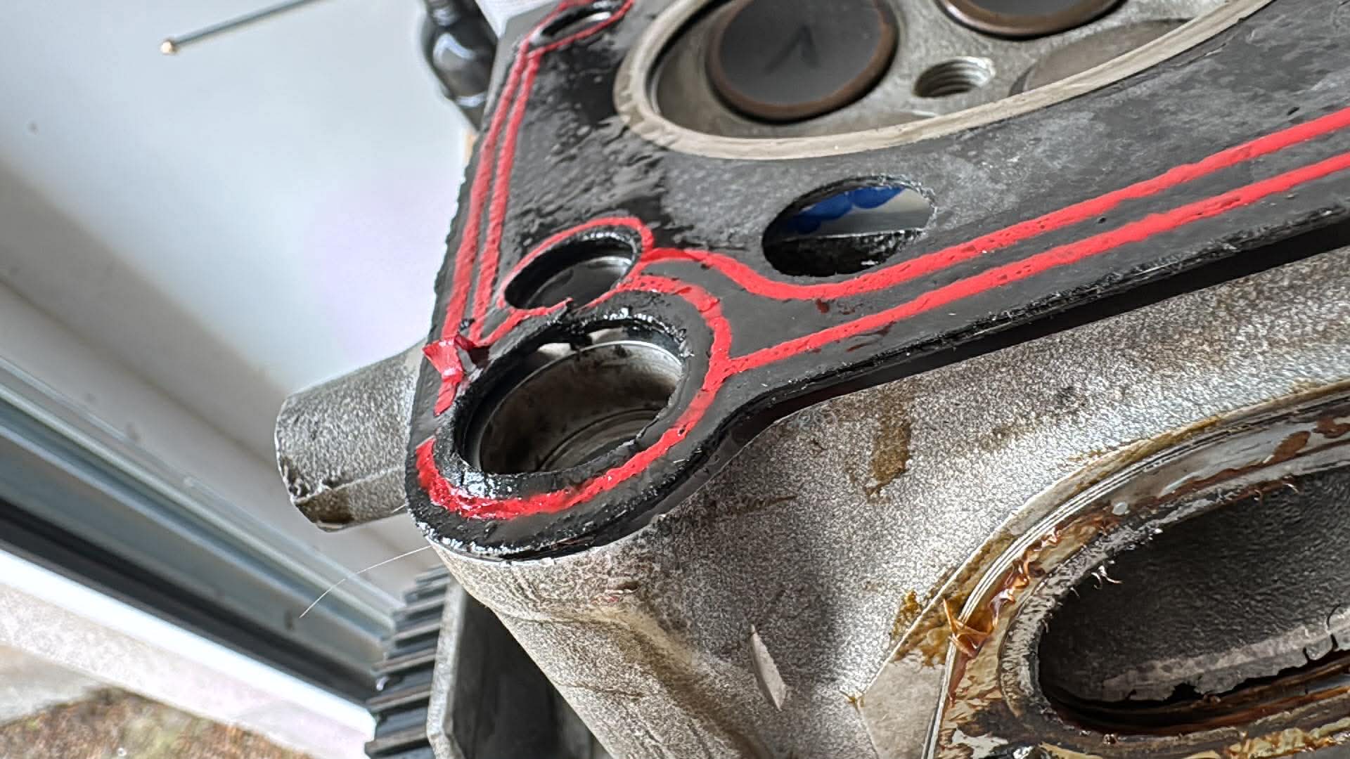 J’ai redémonté ma culasse, puis j’ai mis un peu de liquide dans les conduits d’admission. Voilà le résultat.