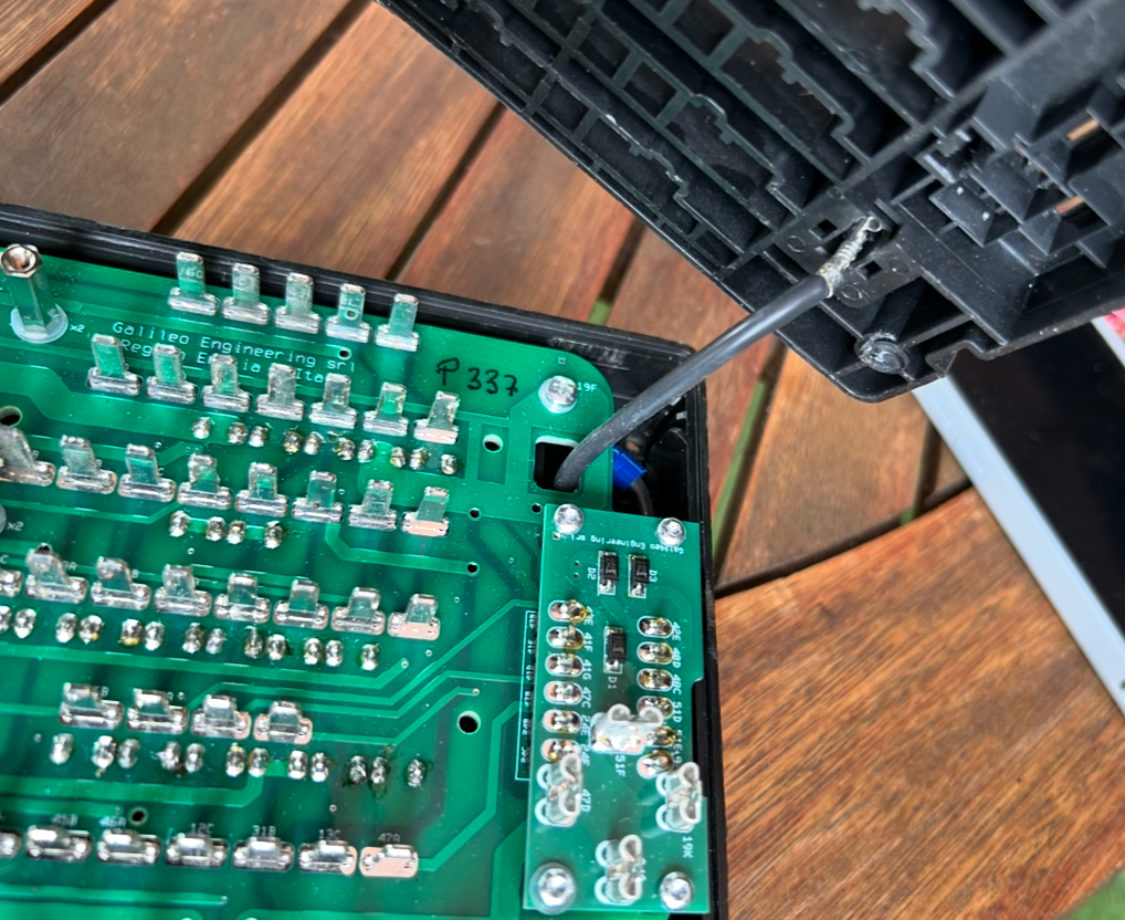 La Biturbox est livrée avec un guide précis d’installation, en français qui plus est (malgré le titre en anglais). Cette face sera celle tournée vers l’habitacle, sous la boite à gants. Le fil noir à droite est la masse.