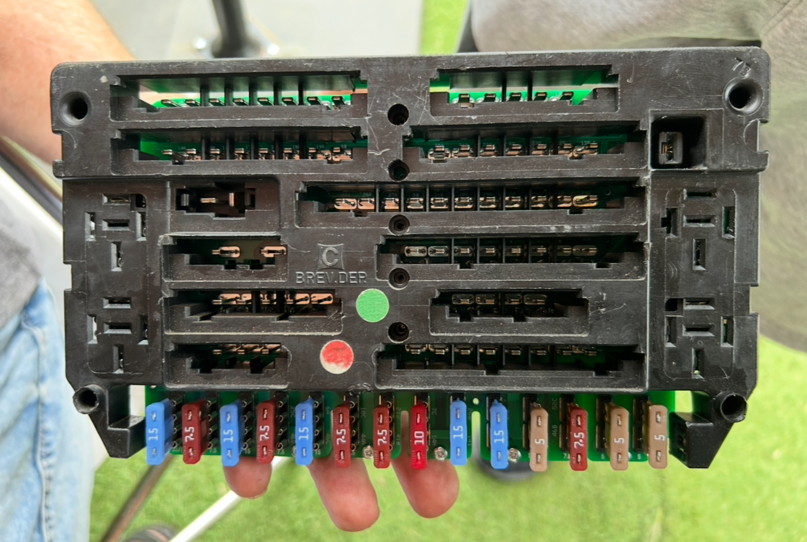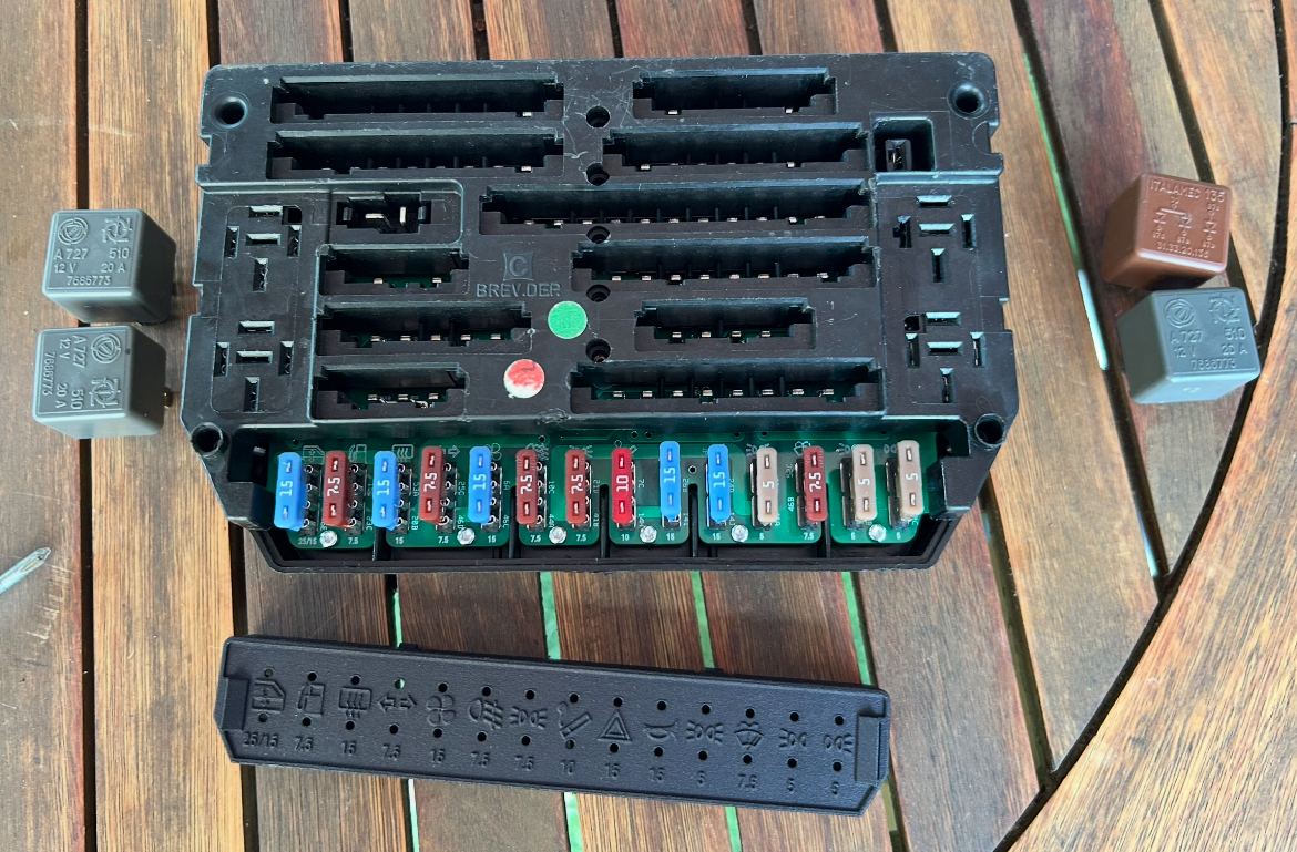 Les fusibles sont déjà plus modernes qu’à l’origine. Fred m’avait installé des fusibles modernes entre les barrettes originelles ce qui avait amélioré les choses. Avant, je mettais le contact et je me courbais pour appuyer sur la barrette et il fallait dans cette position tête en bas attendre 2 minutes qu’elle chauffe un peu (la tablette, pas la tête) sans quoi, je ne démarrais pas !