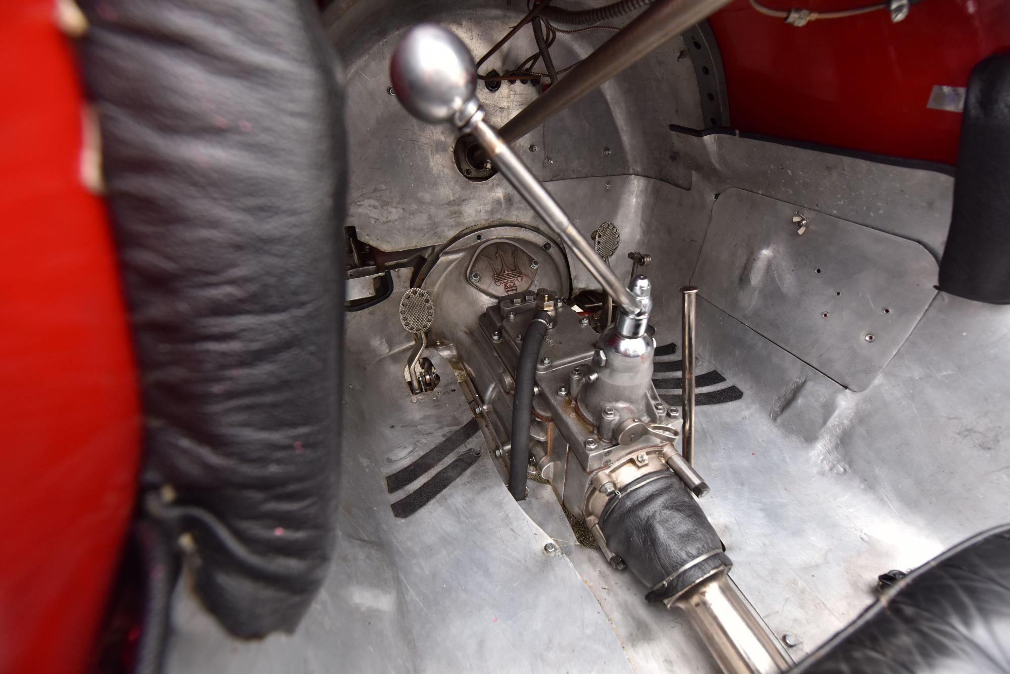 On distingue bien en avant les deux tringleries de direction qui passent de part et d’autre du moteur. Ces deux éléments latéraux seront réunis par l’avant en 1950 sur la 4CLT/50, ce qui améliorera la précision en appui fort en virage :
